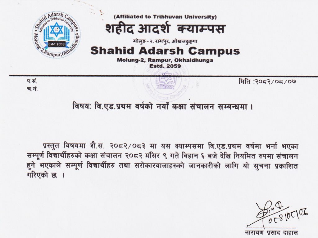 B.Ed. प्रथम वर्षकाे कक्षा संचालन सम्बन्धि सूचना ।